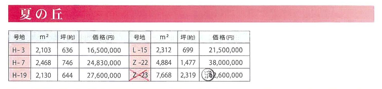 | 備考 | 共用施設等大修理基金80万円~342万円(預り金)水道協力金27万5千円税込(建築時必要)管理費6,187円~46,968円/月 水道管理費1,375円/月(個人別荘の場合) | ||