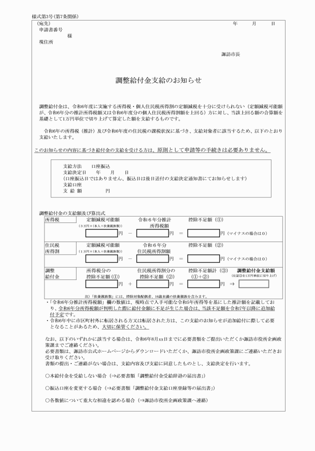 ○諏訪市低所得者支援及び定額減税補足給付金(調整給付)支給事務実施要綱