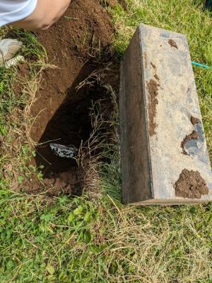 (3)かなり深くに埋設されていました。 (4)無事発掘されました!!