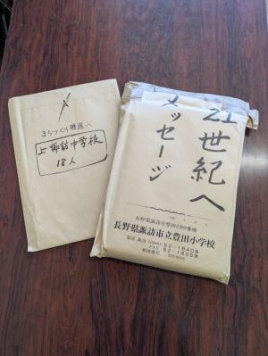 令和7年4月27日(日曜日)に諏訪市役所 1階ロビーにて、開封したタイムカプセルと収納品を展示し、返却しました。